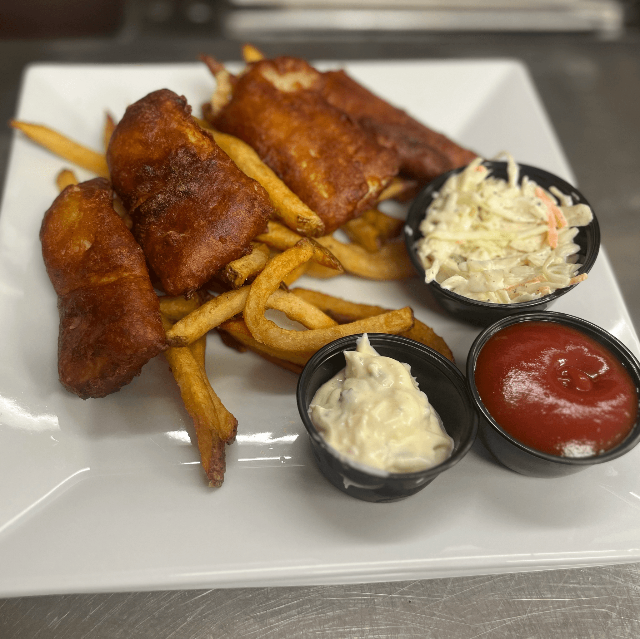 hand beer battered fish served with fries and house made tarter