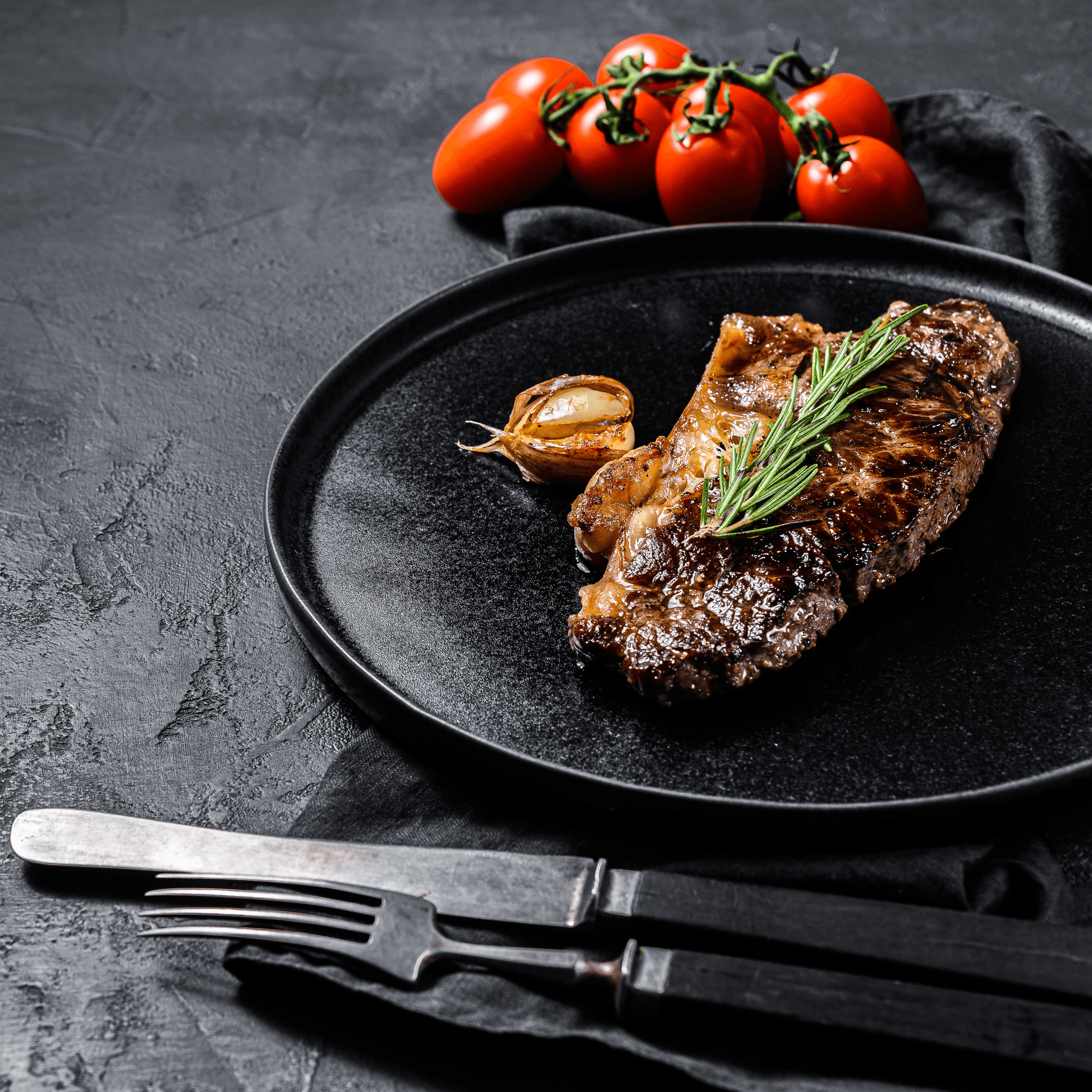 14oz house cut ribeye, seasoned and grilled.